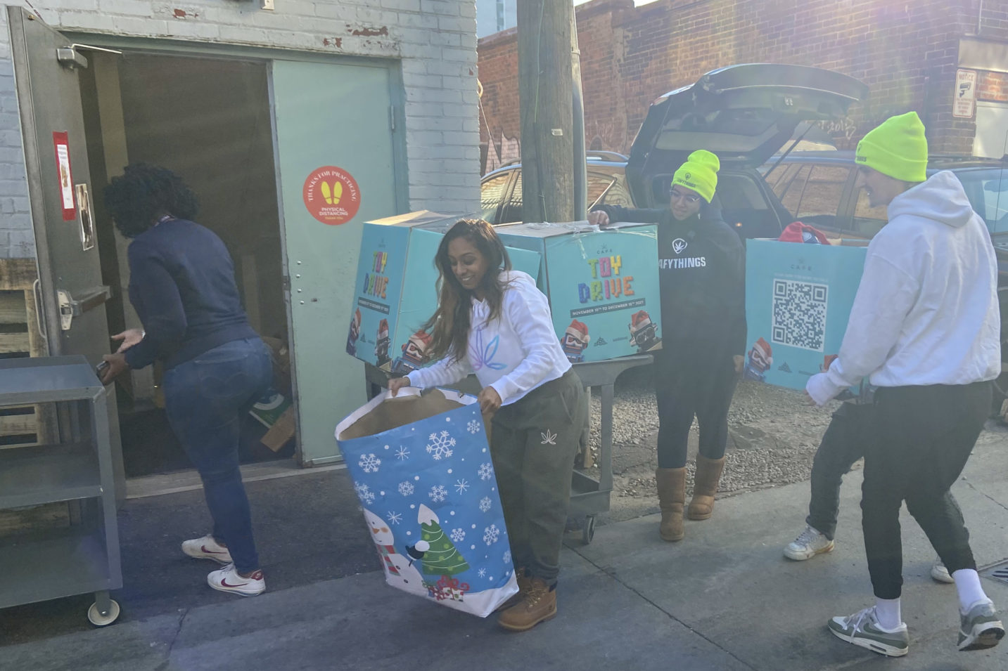 We are extremely appreciative of your donations, and the support of our community! We know that kids’ eyes light up seeing presents under the tree, and we wanted to ensure that as many kids as possible should have something fun to unwrap this holiday season. Scroll through to see photos of us dropping off over 500 toys!