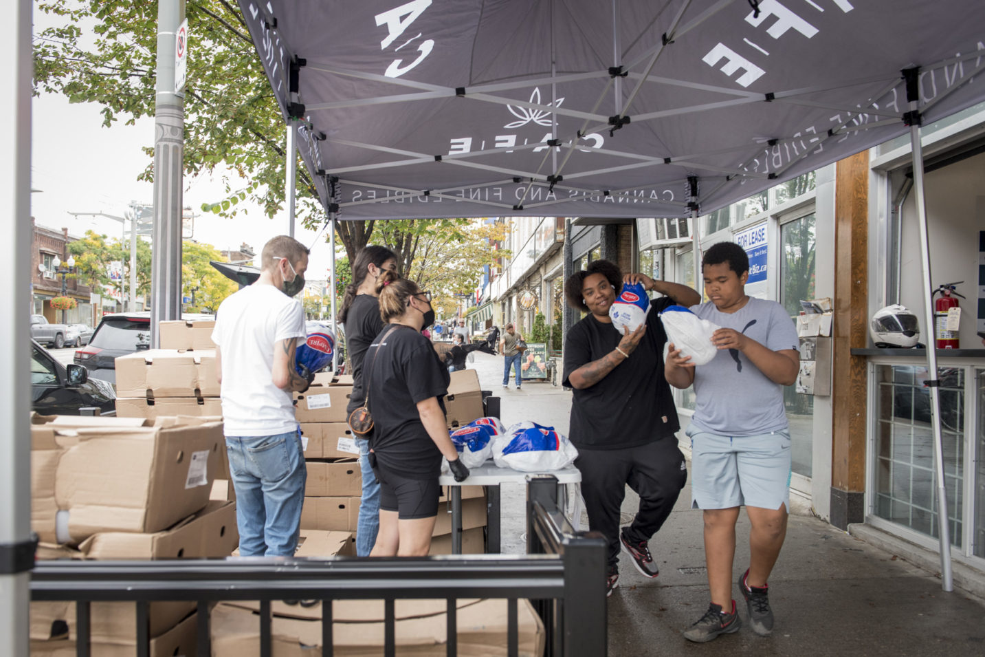 Starting early Saturday morning, our CAFE teams were hard at work setting up tents, tables and of course – turkeys! Over the course of the day, and across all four locations, CAFE staff handed out hundreds of turkeys to our customers and community members – anyone walking by was welcome to stop and pick one up, to take home and enjoy with their loved ones.