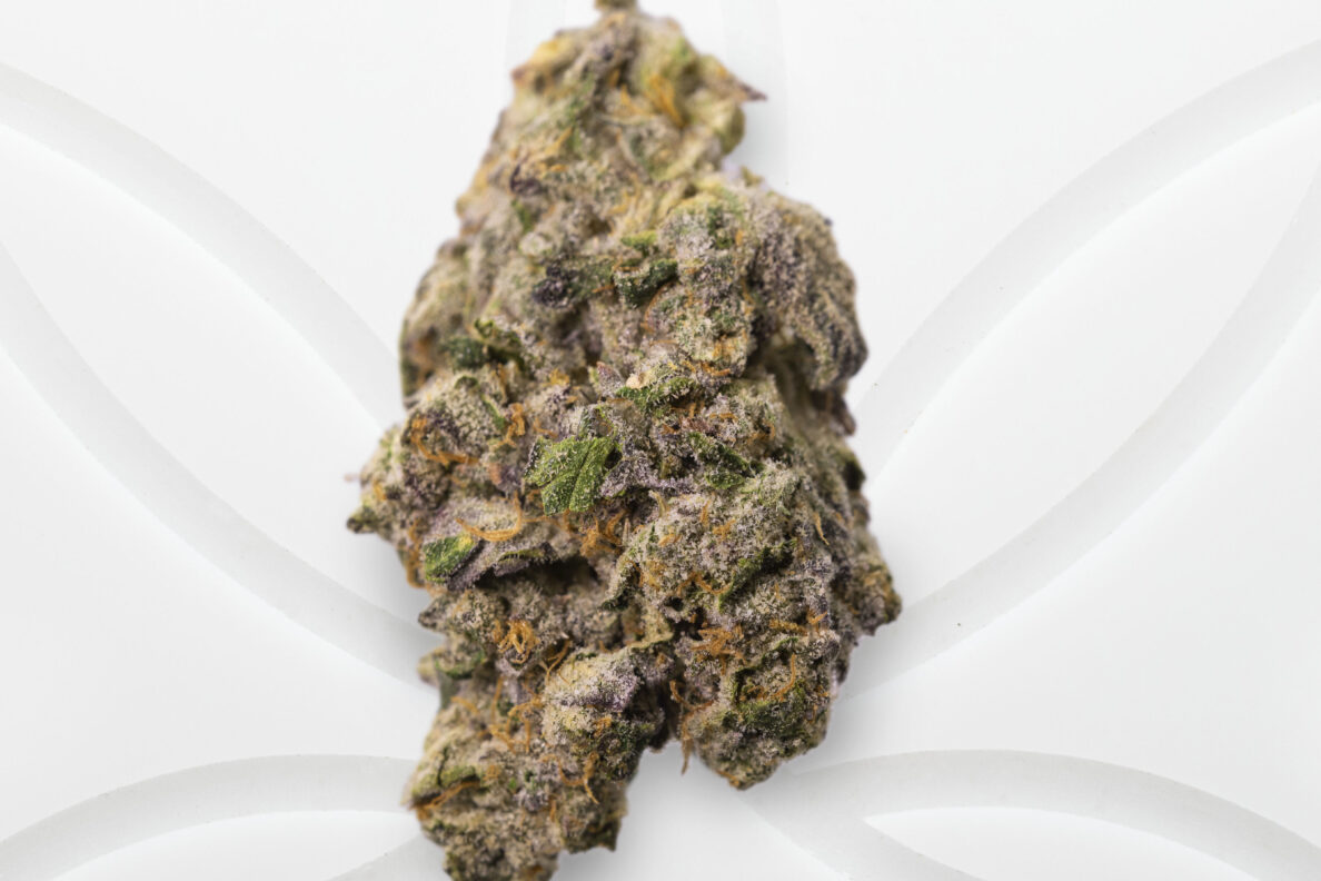 Visually, Rainbow Guava lives up to its name. The buds are dense and multi-toned, featuring shades of forest green, lavender, and deep purple, all wrapped in a generous coating of frosty trichomes. Thin orange pistils curl throughout, giving the flower a vibrant, almost magical look that matches the effects perfectly.