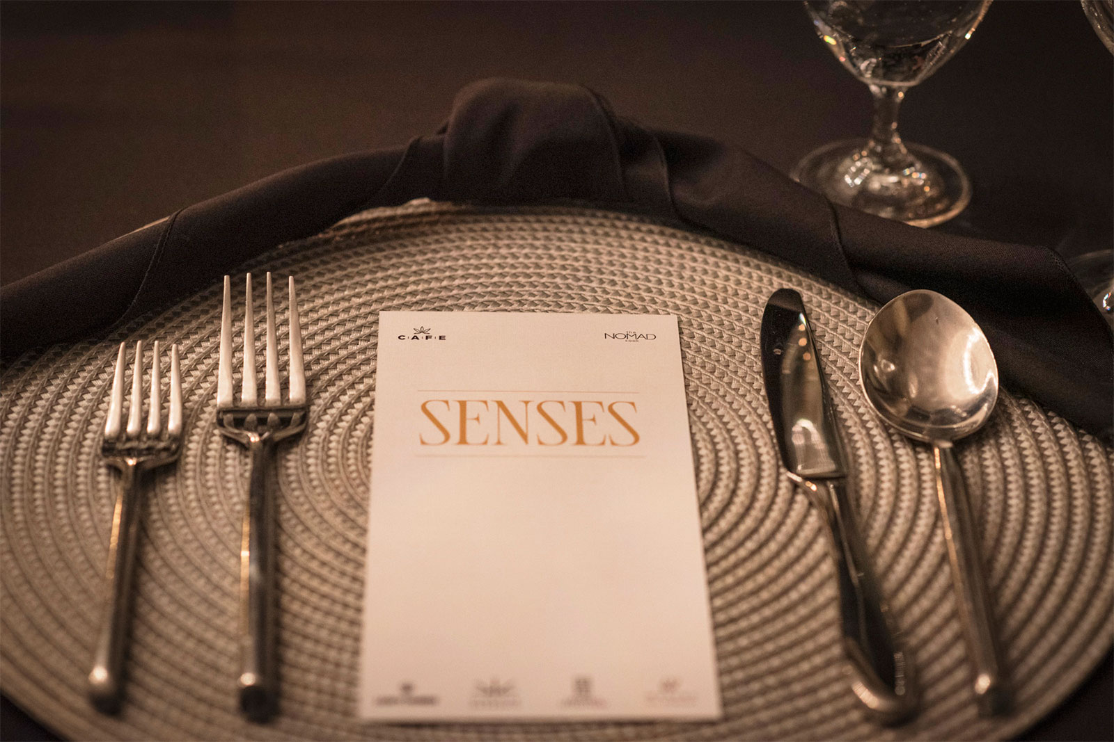The SENSES dinner took place at a private venue in downtown Toronto, with stunning views of the city on all sides. Guests were seated side by side at long tables, making for a cozy, comfortable and intimate setting where laughter and conversations flowed into the night. Our favourite acoustic singer Jodie B brought the music, while Chef Antonin and his team bustled about the kitchen, individually dosing each dish to each guests’ preference. The dinner kicked off with an infused, uniquely paired foie gras and cotton candy appetizer before the exquisitely plated dinner courses were brought out. Guests enjoyed Chef Antonin’s famous and stunningly beautiful soup-salad, followed by tuna tartare and raw lamb with marinated mushrooms. A scrumptious serving of fine Belgian chocolate topped with coffee cream rounded out the dinner experience. At the end, each guest received a goody bag filled with gifts from our sponsors. We are happy to say this dinner was a smashing success, and we can’t wait for the next one!