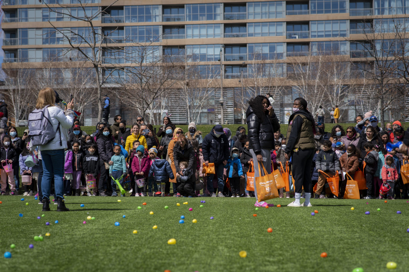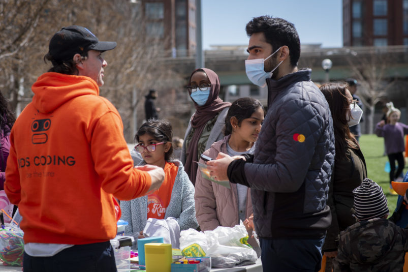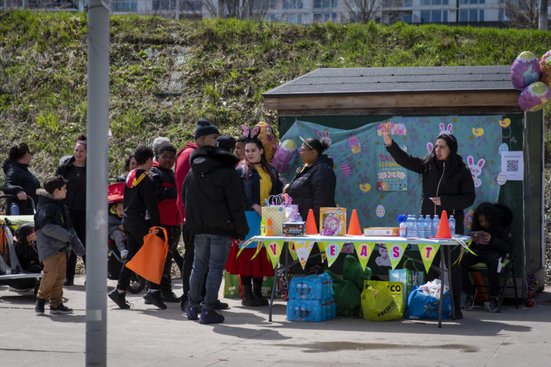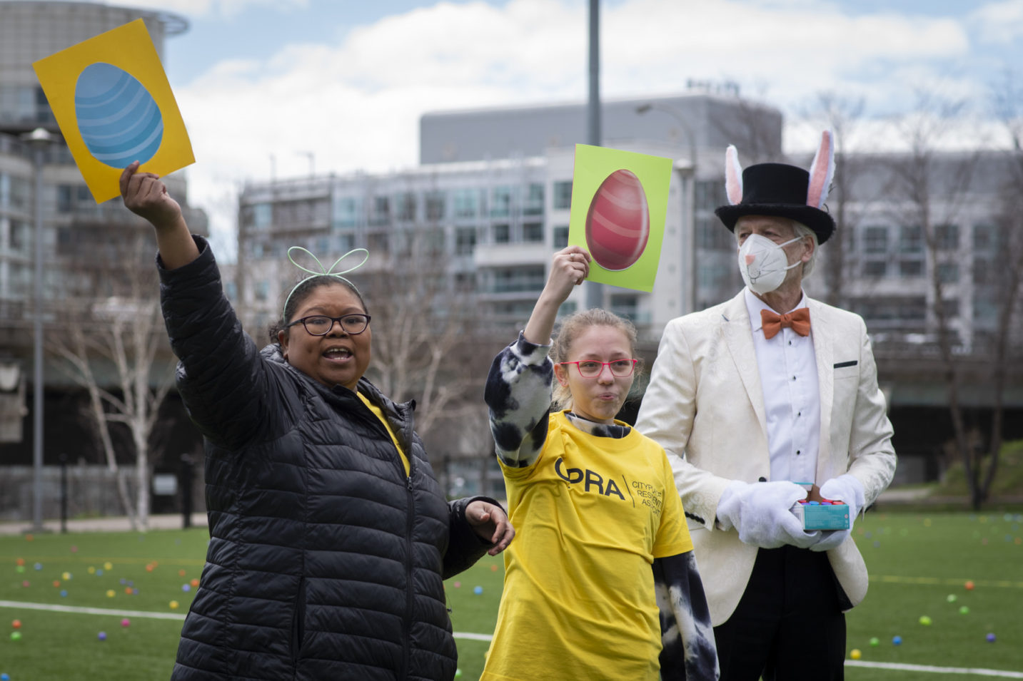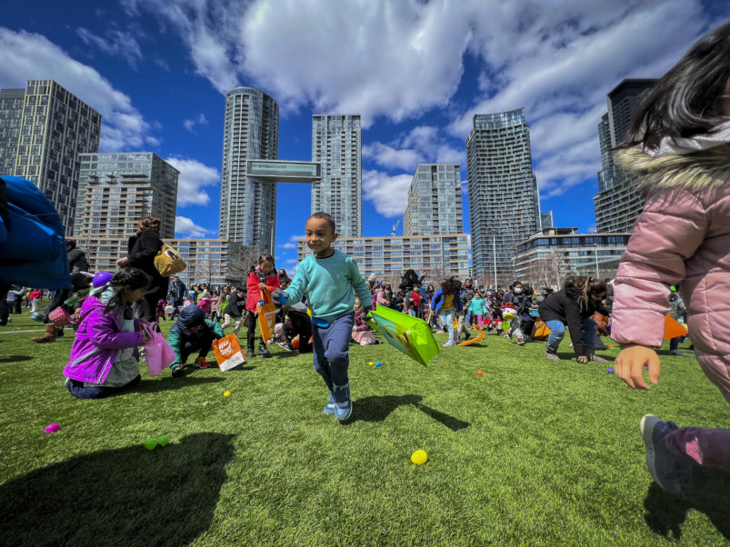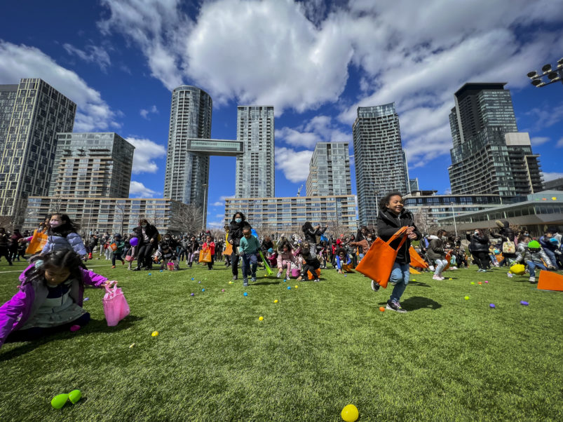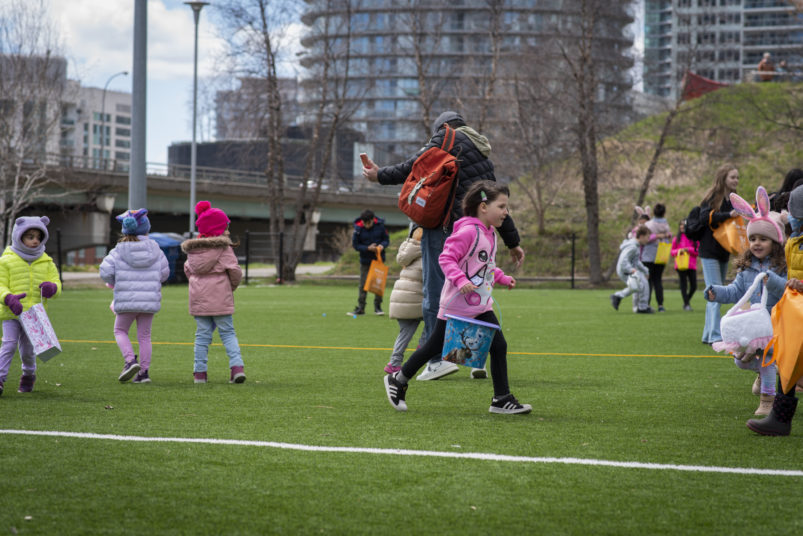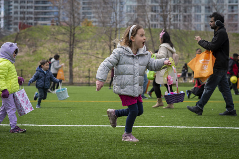This past Sunday, CAFE participated in the CPRA Easter Scramble in downtown Toronto’s CityPlace! We, alongside other local businesses in the CityPlace community, were happy to come together and host a very egg-citing and fun day for children and their families in the area! The day was bright and sunny, and lots of families came out to Canoe Landing Park for an afternoon of Easter-themed activities. The event featured an egg hunt, arts and crafts, face painting and goodie bags for the kids to take home. CAFE staff volunteered alongside CPRA organizers, helping to guide children through the activities, and also running a booth where they could trade in their eggs for toys and games.