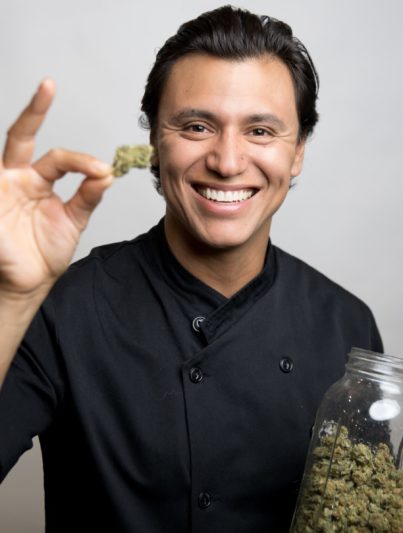 Chef Travis Petersen, aka The Nomad Cook. Petersen specializes in pairing cannabis with gourmet meals, for a unique infused-dining experience. Working alongside Top Chef Canada Winner Erica Karbelnik, Top Chef Canada Finalist Josh Karbelnik and other chefs, Petersen hosted a Wake and Bake Brunch in Toronto, followed by a private dinner prepared with Scott Vivian of Beast.