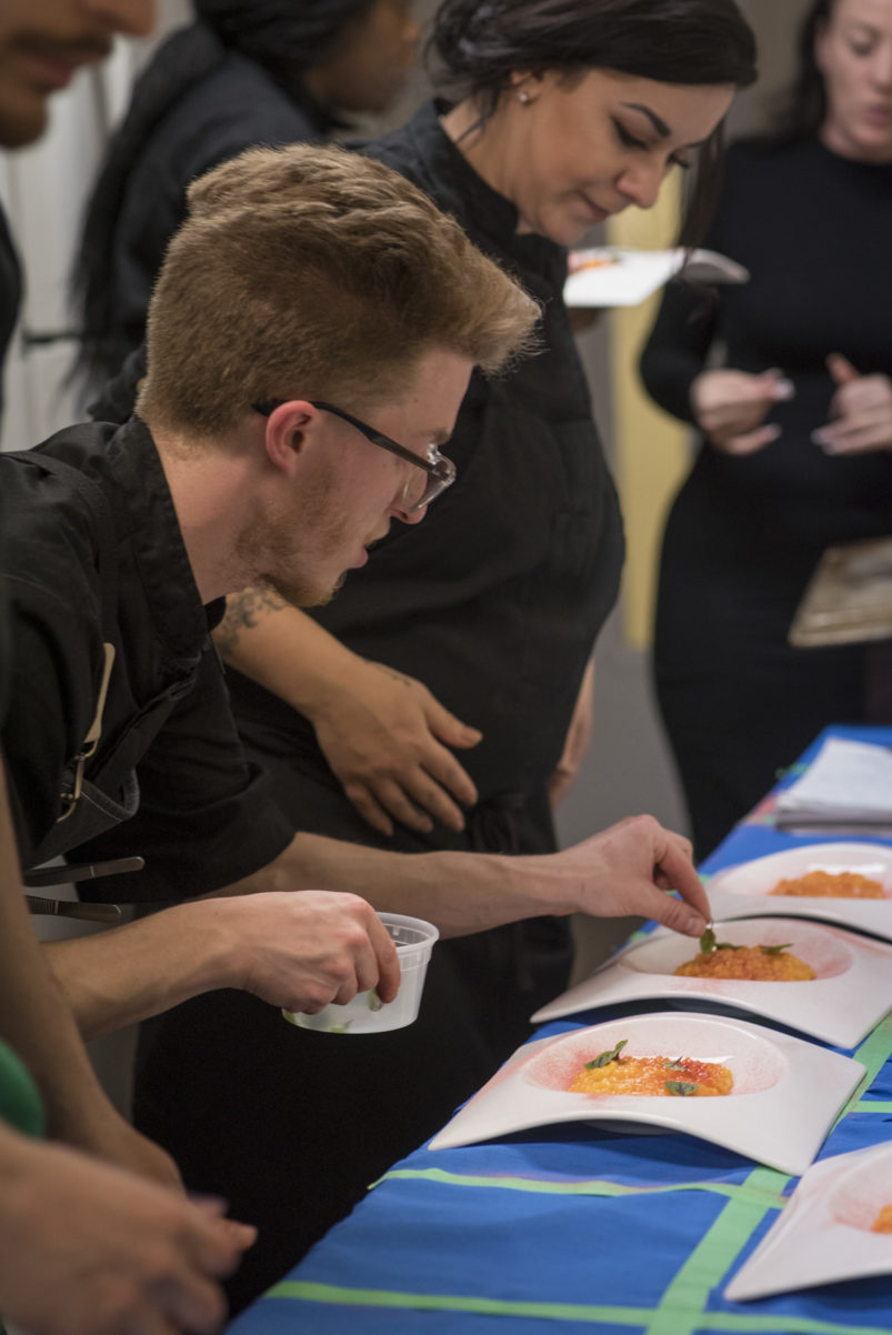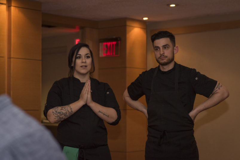 What’s up next after brunch? Dinner, of course! Following our SENSES Wake & Bake Brunch this past weekend, CAFE and The Nomad Cook presented our long-awaited SENSES Supper event – with Top Chef winner and contestants Chef Erica & Josh Karbelnik. We were so honoured to work with this amazingly talented culinary duo, and so were our guests. The nearly-sold out event was scheduled to start at 6pm, but guests began to arrive early in anticipation and were lining the lobby of the venue at least half an hour prior. The excitement and energy was palpable in the air, and we thanked guests for their patience as they began to enter the hall, eager for the events of the evening ahead.