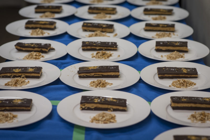 The SENSES Supper took place at a private venue in the heart of downtown Toronto, just minutes away from two of CAFE’s four downtown dispensary locations. Guests were greeted by event staff bearing trays of refreshing mocktails at the doors – the first of which was a ginger spritzer infused with CBD. Guests made their way to their assigned tables in the candlelit, cozy space and sipped on their drinks while Chef Erica Karbelnik came around to greet them and discuss their infusion levels for the evening. Meanwhile, Chef Josh was hard at work in the kitchen, overseeing the plating process of the first course about to go out. The Chefs were supported in the kitchen by Chef Carson MacDonald, a young and talented culinary entrepreneur with a shared passion for cannabis. The menu for the evening was a delightful surprise – each dish was a fine dining take on classic, very much loved North American staples. Guests were thrilled to explore the Karbelniks’ take on pizza, mac and cheese, and for dessert – a decadent spin on Reese’s Pieces with crunch bits of Lays chips and pretzel bites. Just thinking about all those amazing meals has us wanting to go back and do the night all over again!