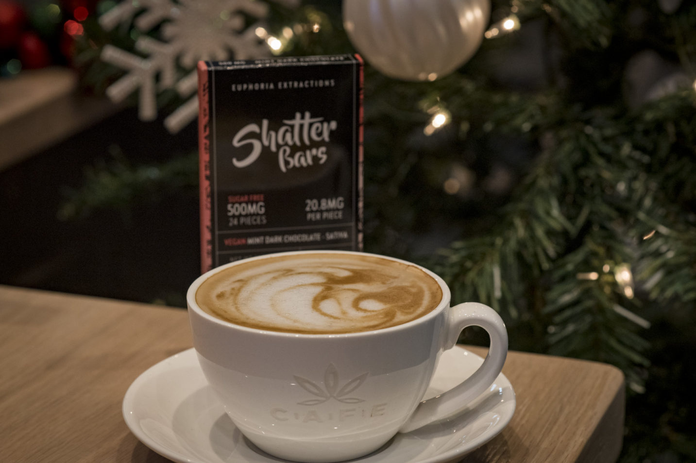 Scroll through our photos to see the making of CAFE’s THC infused Peppermint Mochachino!